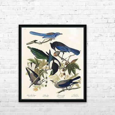 Yellow-Billed Magpie Stellers Jay Ultramarine Jay and Clarks Crow Picture Frame Printing