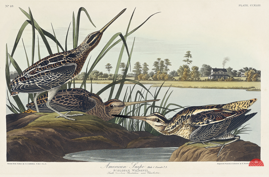 American Snipe from Birds of America 1827 by John James Audubon 1785 - 1851 etched by Robert Havell 1793 - 1878.