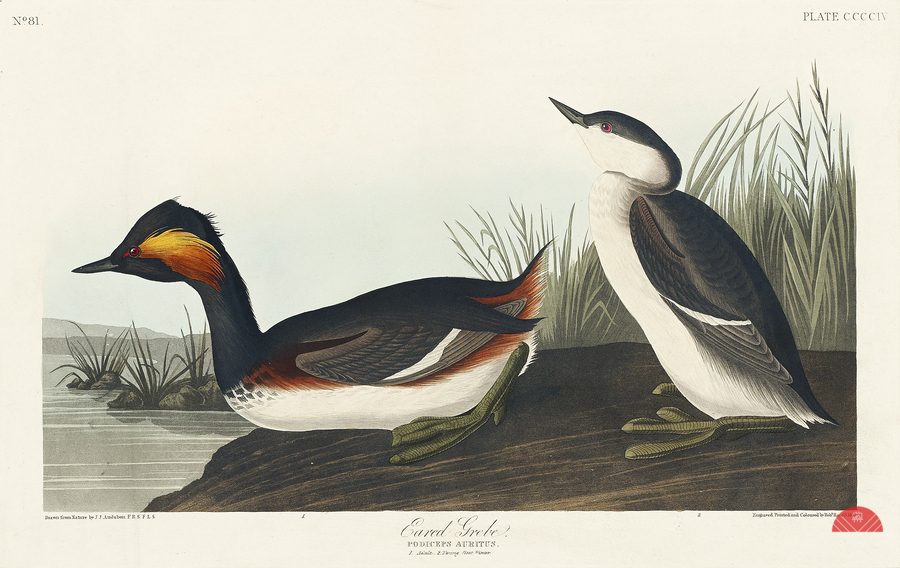 Eared Grebe from Birds of America 1827 by John James Audubon 1785 - 1851 etched by Robert Havell 1793 - 1878.