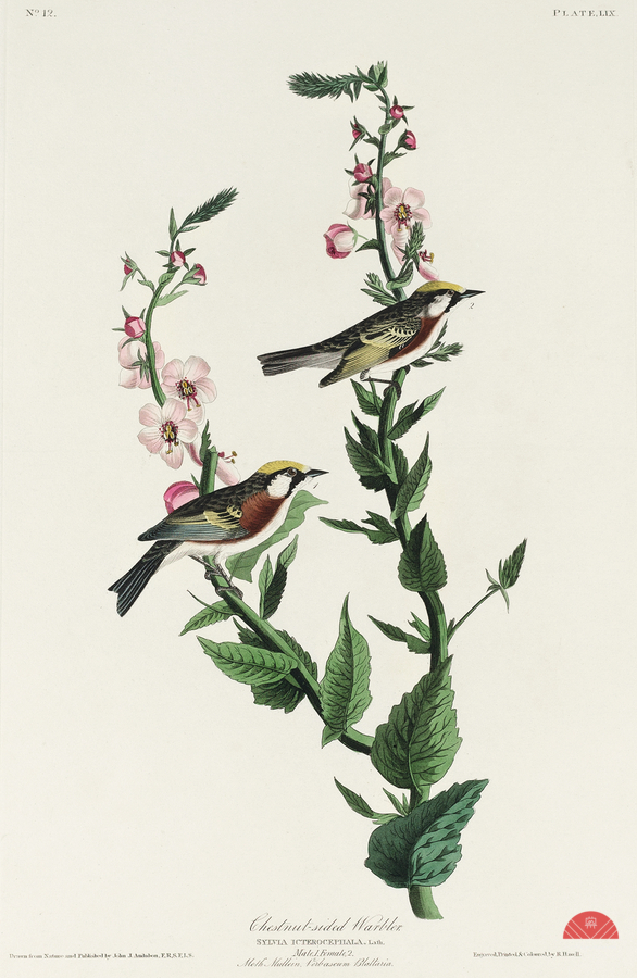 Chestnut-sided Warbler from Birds of America 1827 by John James Audubon 1785 - 1851 sketched by Robert Havell 1793 - 1878.