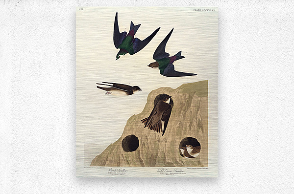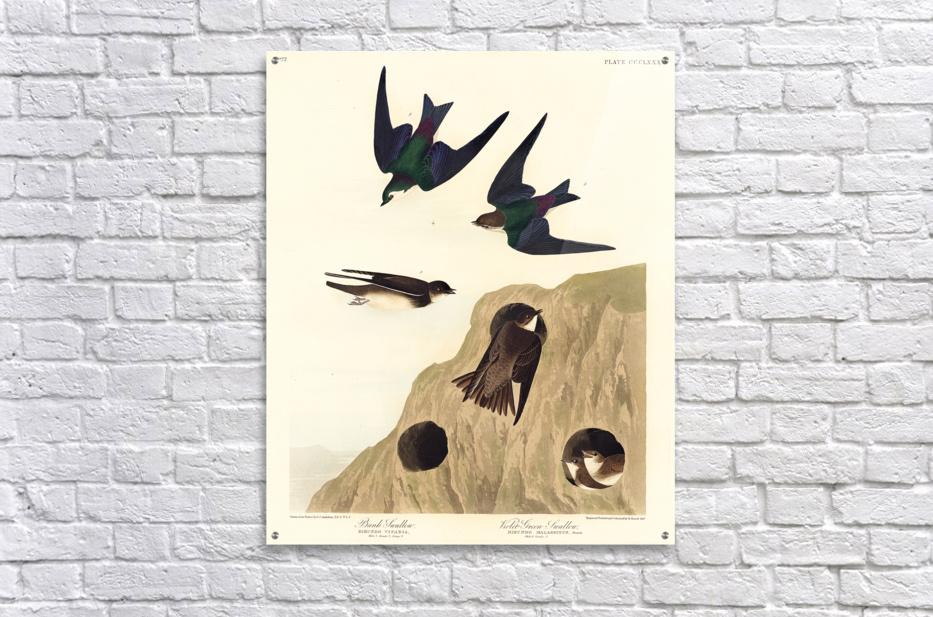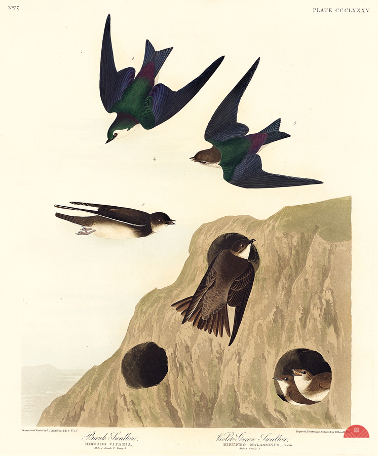 Bank Swallow and Violet-green Swallow from Birds of America 1827 by John James Audubon 1785 - 1851 etched by Robert Havell 1793 - 1878.