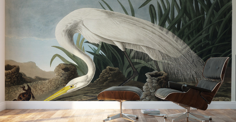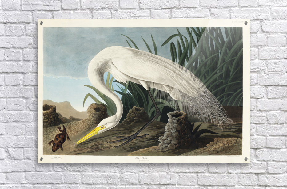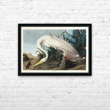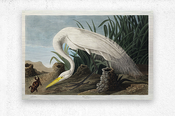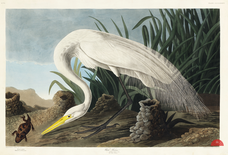 White Heron from Birds of America 1827 by John James Audubon 1785 - 1851 etched by Robert Havell 1793 - 1878.
