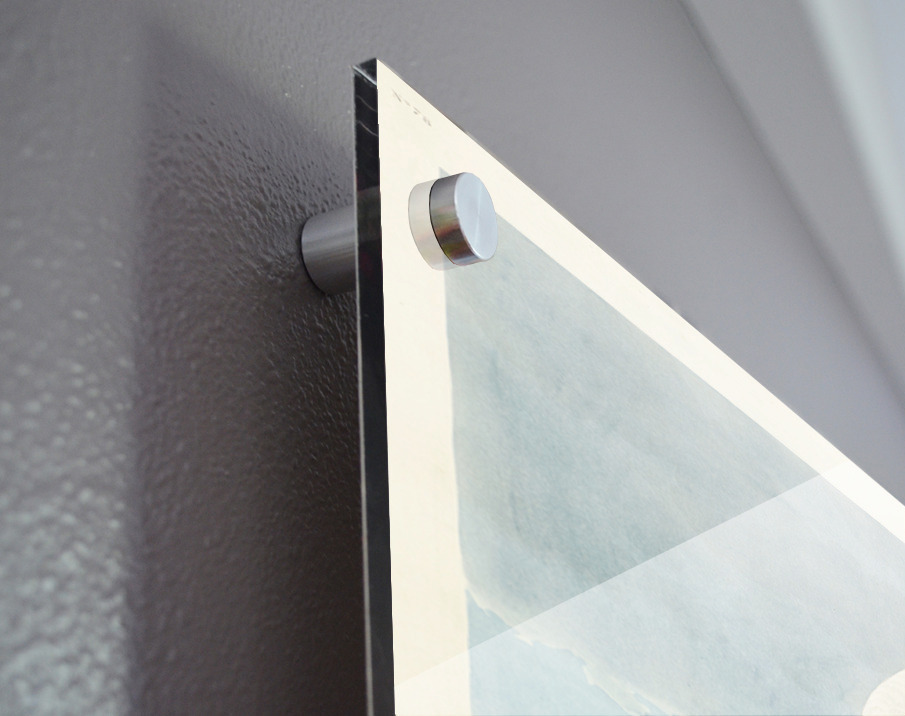 Printed to the edge - Ready to hang - provided with 4 premium polished aluminum stand off ( wall screws and mounting hardware provided ) We suggest a thicker 3/16" acrylic for any size over 42 inches to guarantee a straight acrylic, without curvature