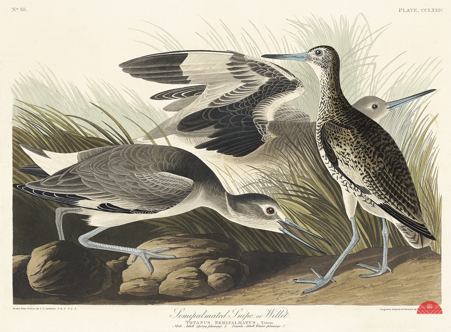 Semipalmated Snipe or Willet from Birds of America 1827 by John James Audubon 1785 - 1851 etched by Robert Havell 1793 - 1878.