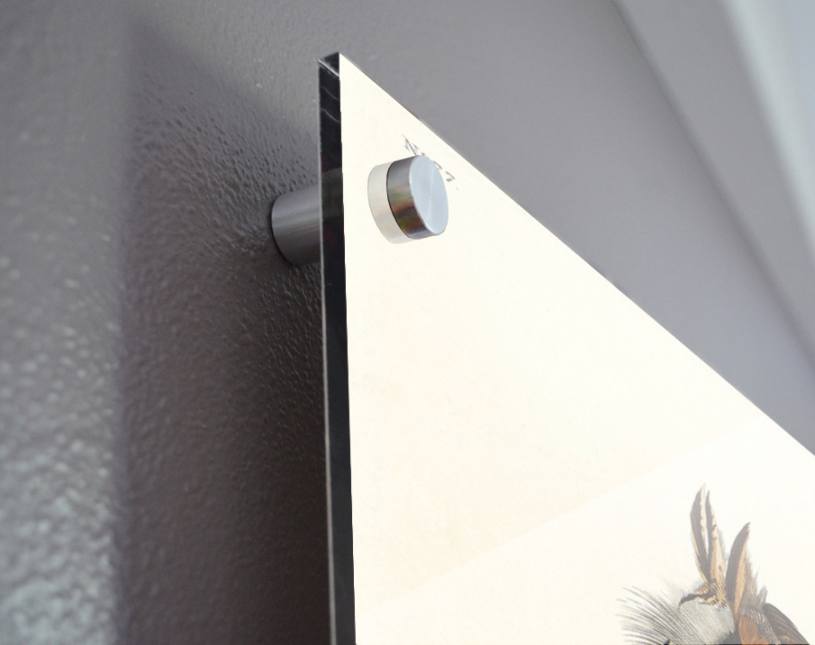 Printed to the edge - Ready to hang - provided with 4 premium polished aluminum stand off ( wall screws and mounting hardware provided ) We suggest a thicker 3/16" acrylic for any size over 42 inches to guarantee a straight acrylic, without curvature