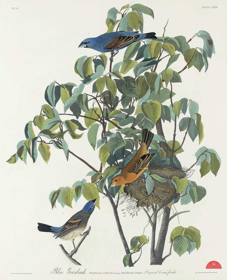 Blue Grosbeak from Birds of America 1827 by John James Audubon 1785 - 1851 etched by Robert Havell 1793 - 1878.