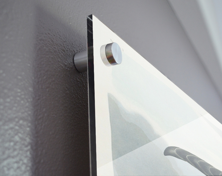 Printed to the edge - Ready to hang - provided with 4 premium polished aluminum stand off ( wall screws and mounting hardware provided ) We suggest a thicker 3/16" acrylic for any size over 42 inches to guarantee a straight acrylic, without curvature