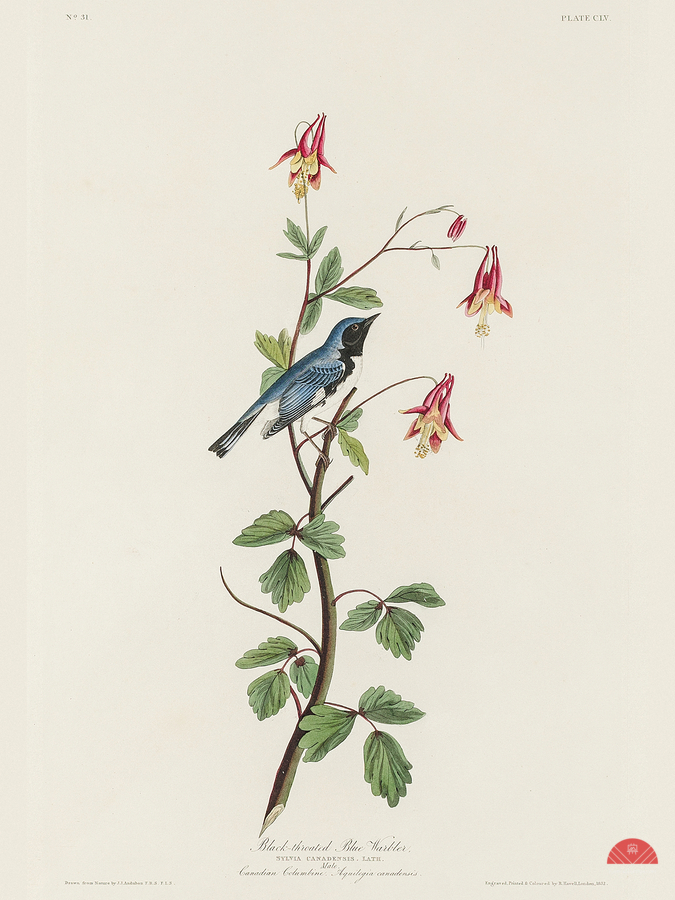 Black-throated Blue Warbler from Birds of America 1827 by John James Audubon 1785 - 1851 etched by Robert Havell 1793 - 1878.