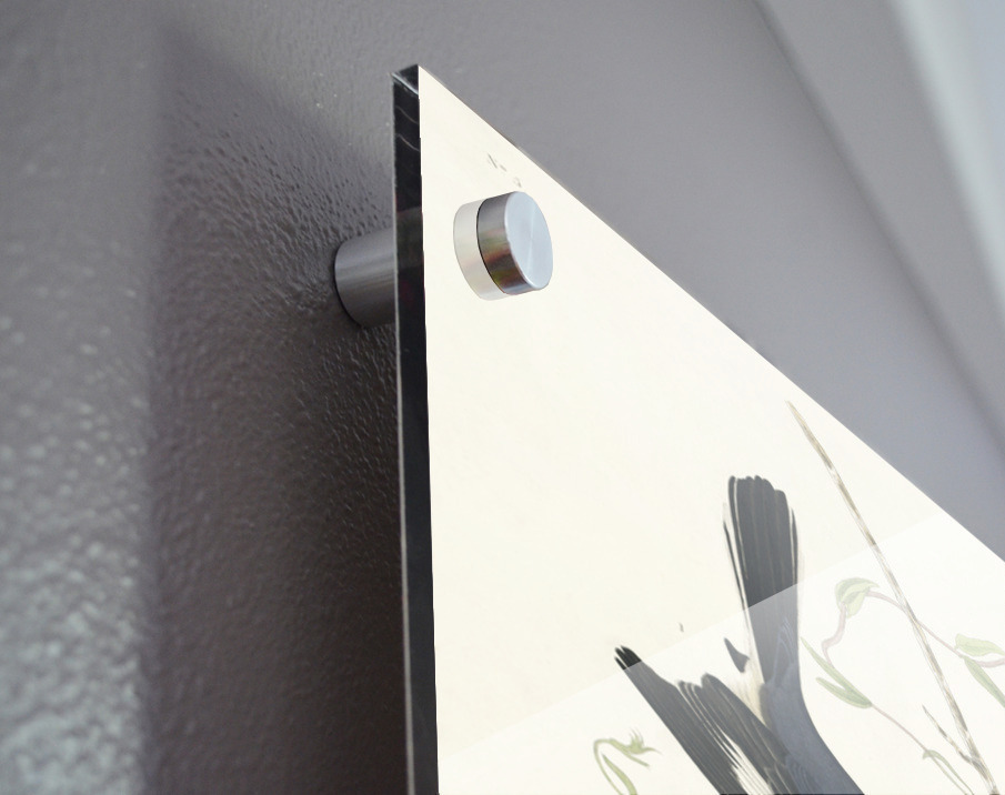 Printed to the edge - Ready to hang - provided with 4 premium polished aluminum stand off ( wall screws and mounting hardware provided ) We suggest a thicker 3/16" acrylic for any size over 42 inches to guarantee a straight acrylic, without curvature
