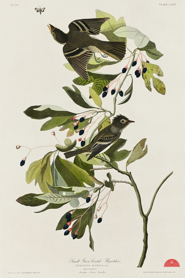 Small Green Crested Flycatcher from Birds of America 1827 by John James Audubon 1785 - 1851 etched by Robert Havell 1793 - 1878.