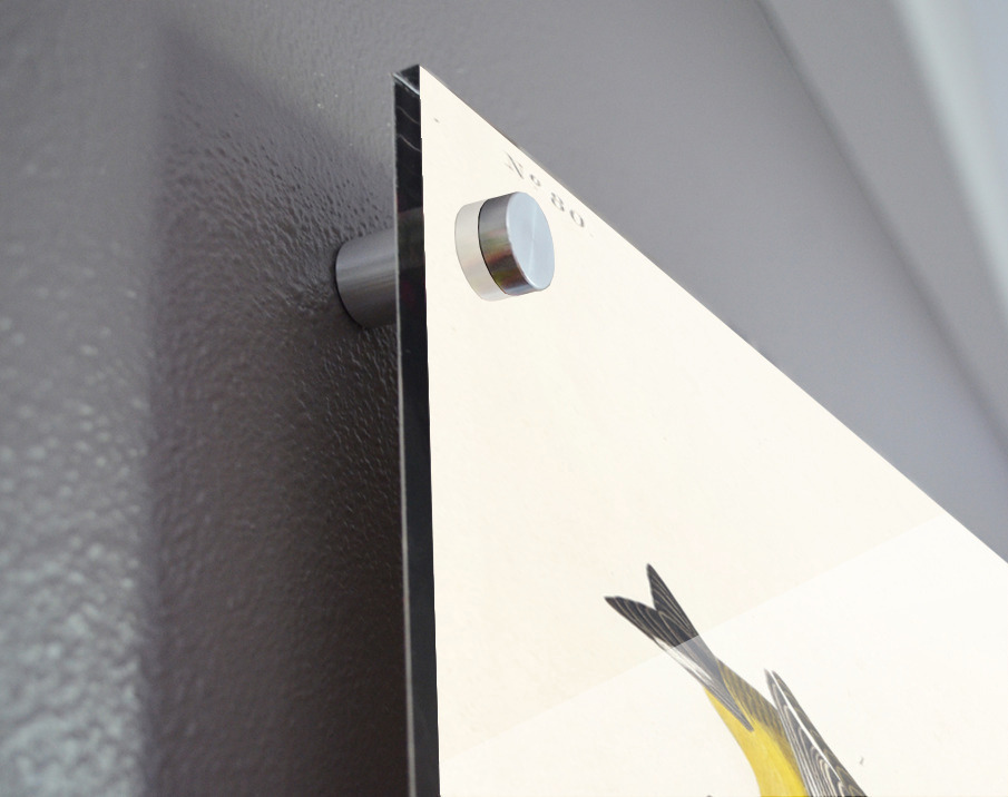 Printed to the edge - Ready to hang - provided with 4 premium polished aluminum stand off ( wall screws and mounting hardware provided ) We suggest a thicker 3/16" acrylic for any size over 42 inches to guarantee a straight acrylic, without curvature