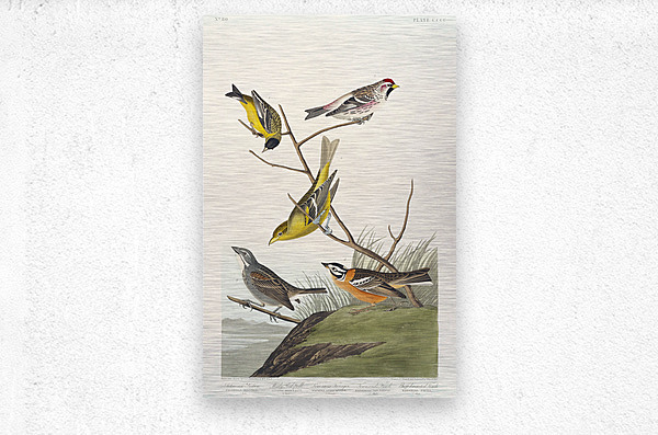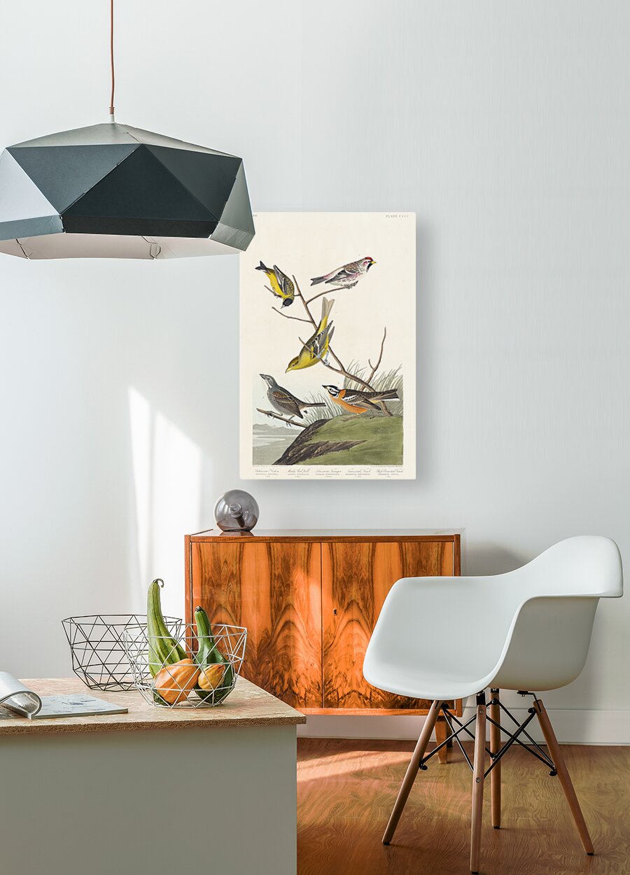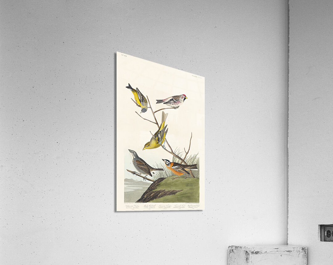 Get this artwork "Arkansaw Siskin Mealy Red-poll Louisiana Tanager Townsends Bunting and Buff-breasted Finch" in a framed print.