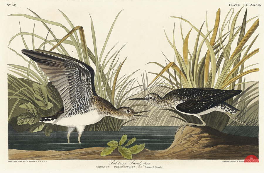 Solitary Sandpiper from Birds of America 1827 by John James Audubon 1785 - 1851 etched by Robert Havell 1793 - 1878.