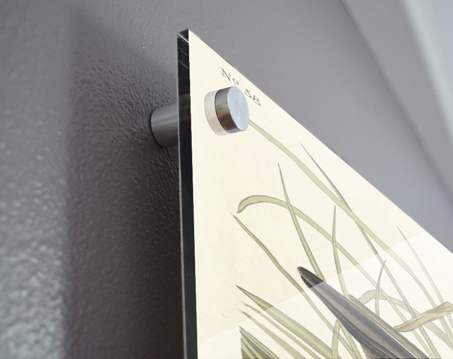 Printed to the edge - Ready to hang - provided with 4 premium polished aluminum stand off ( wall screws and mounting hardware provided ) We suggest a thicker 3/16" acrylic for any size over 42 inches to guarantee a straight acrylic, without curvature