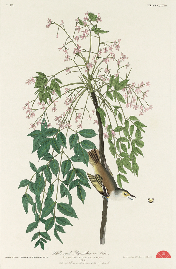 White-eyed Flycatcher or Vireo from Birds of America 1827 by John James Audubon 1785 - 1851 etched by Robert Havell 1793 - 1878.