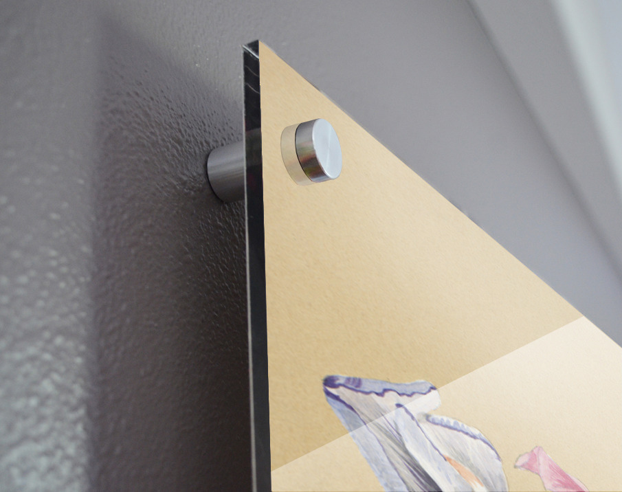 Printed to the edge - Ready to hang - provided with 4 premium polished aluminum stand off ( wall screws and mounting hardware provided ) We suggest a thicker 3/16" acrylic for any size over 42 inches to guarantee a straight acrylic, without curvature