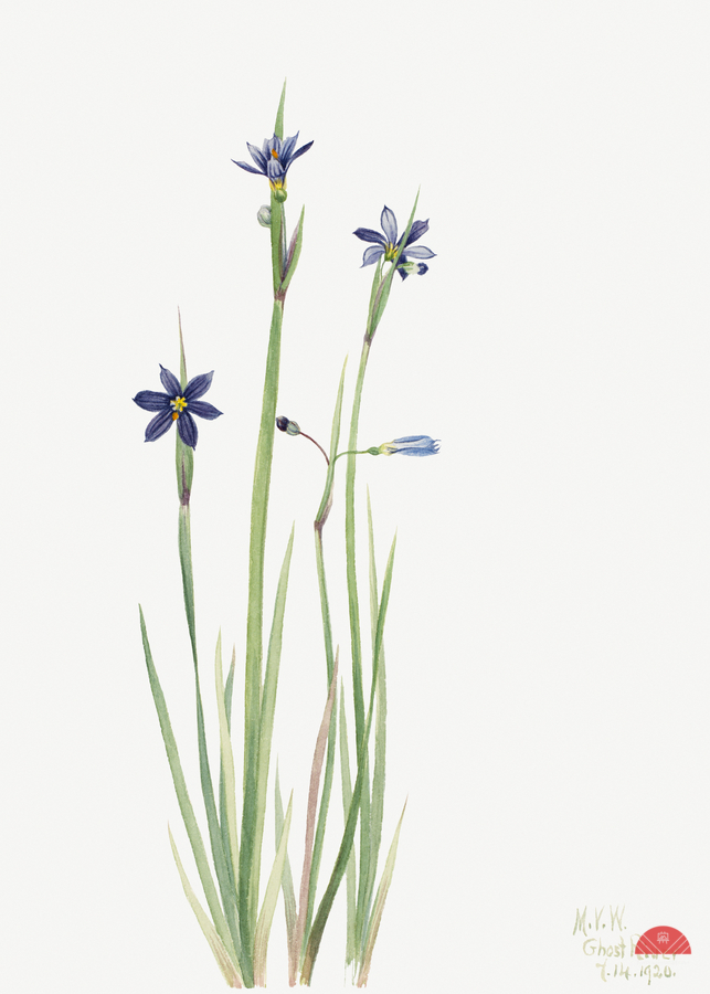 Blue-eyed-grass Sisyrinchium angustifolium 1920 by Mary Vaux Walcott.