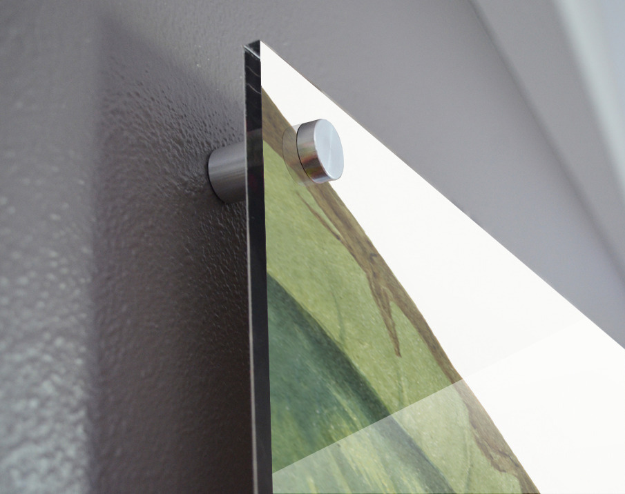 Printed to the edge - Ready to hang - provided with 4 premium polished aluminum stand off ( wall screws and mounting hardware provided ) We suggest a thicker 3/16" acrylic for any size over 42 inches to guarantee a straight acrylic, without curvature
