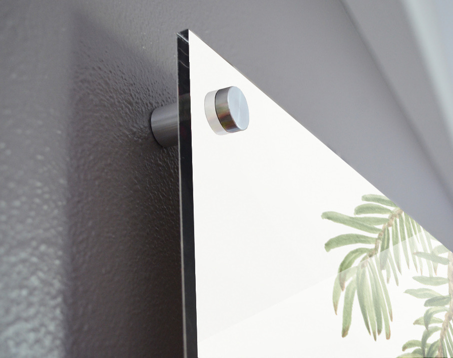 Printed to the edge - Ready to hang - provided with 4 premium polished aluminum stand off ( wall screws and mounting hardware provided ) We suggest a thicker 3/16" acrylic for any size over 42 inches to guarantee a straight acrylic, without curvature