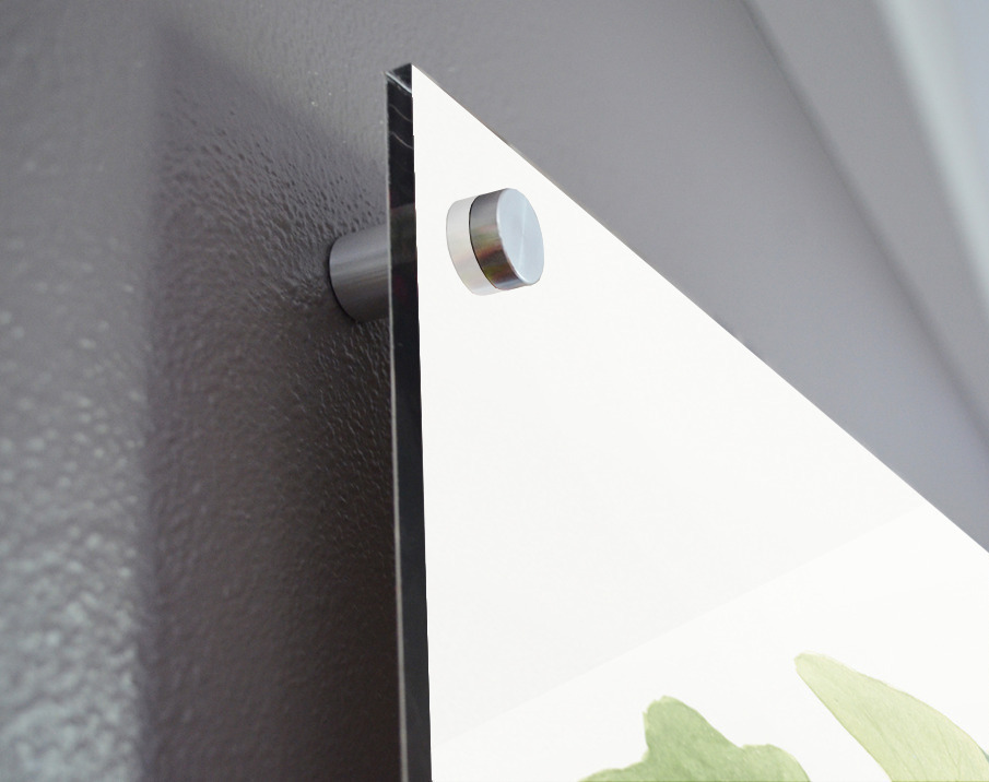 Printed to the edge - Ready to hang - provided with 4 premium polished aluminum stand off ( wall screws and mounting hardware provided ) We suggest a thicker 3/16" acrylic for any size over 42 inches to guarantee a straight acrylic, without curvature