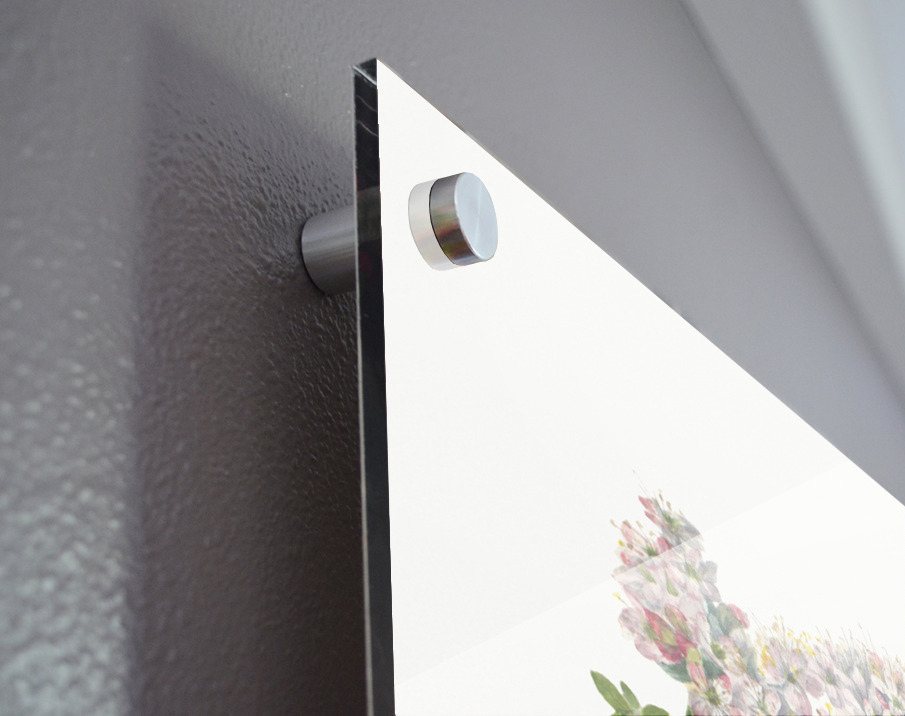 Printed to the edge - Ready to hang - provided with 4 premium polished aluminum stand off ( wall screws and mounting hardware provided )