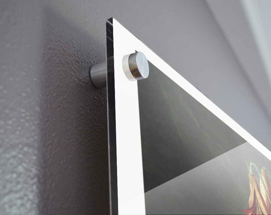 Printed to the edge - Ready to hang - provided with 4 premium polished aluminum stand off ( wall screws and mounting hardware provided ) We suggest a thicker 3/16" acrylic for any size over 42 inches to guarantee a straight acrylic, without curvature