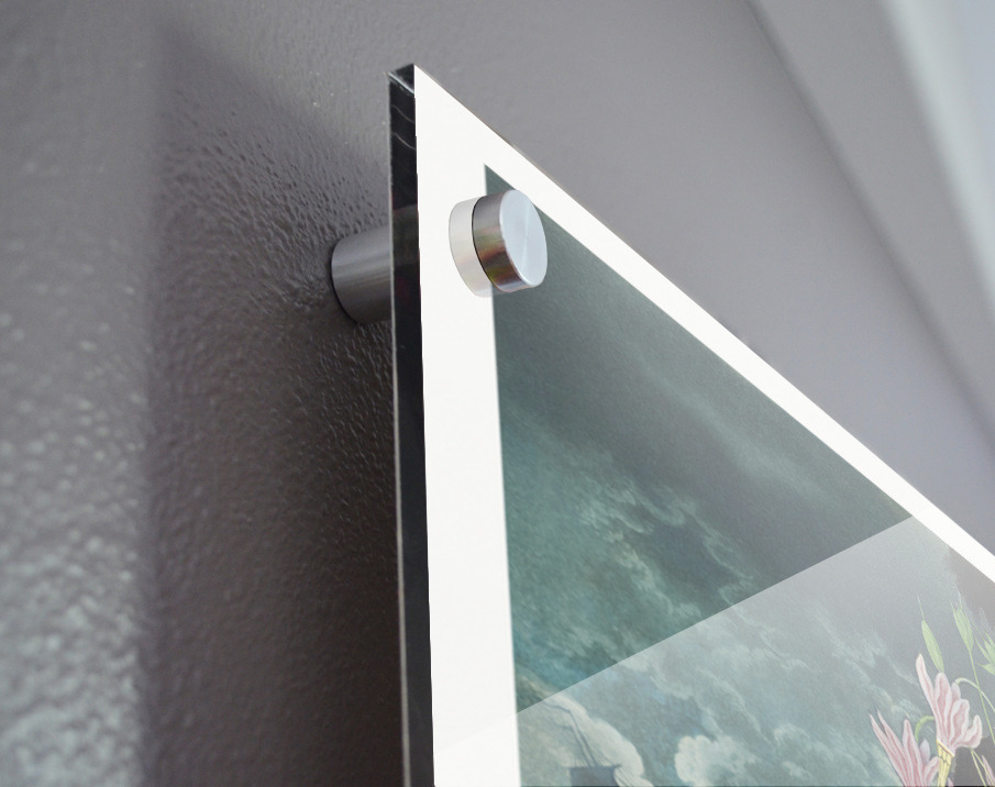 Printed to the edge - Ready to hang - provided with 4 premium polished aluminum stand off ( wall screws and mounting hardware provided )