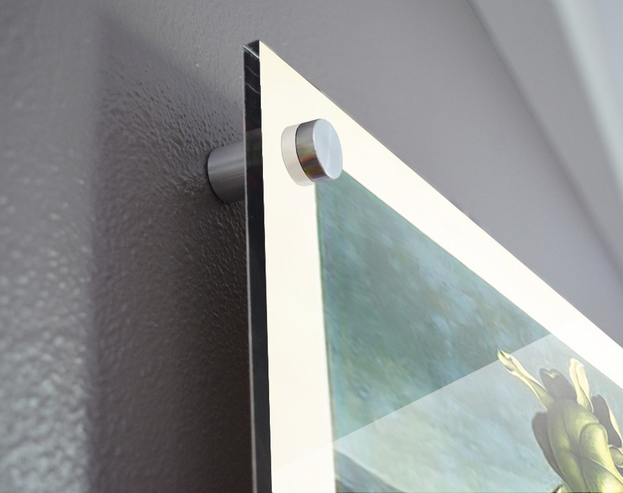 Printed to the edge - Ready to hang - provided with 4 premium polished aluminum stand off ( wall screws and mounting hardware provided )