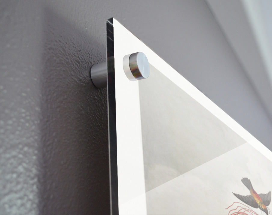 Printed to the edge - Ready to hang - provided with 4 premium polished aluminum stand off ( wall screws and mounting hardware provided ) We suggest a thicker 3/16" acrylic for any size over 42 inches to guarantee a straight acrylic, without curvature
