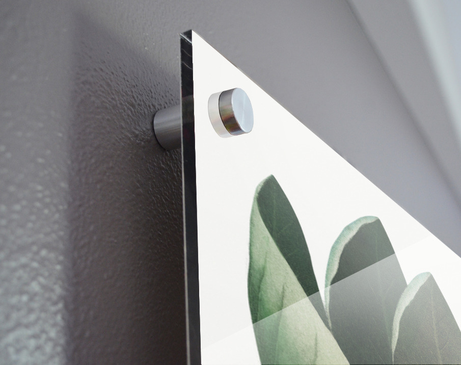 Printed to the edge - Ready to hang - provided with 4 premium polished aluminum stand off ( wall screws and mounting hardware provided ) We suggest a thicker 3/16" acrylic for any size over 42 inches to guarantee a straight acrylic, without curvature