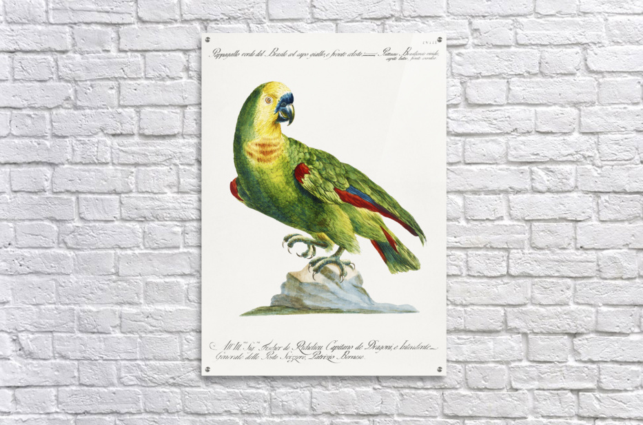 Get this artwork "Pappagallo verde del Brasile col capo giallo e fronte celeste Parrot" in a framed print.