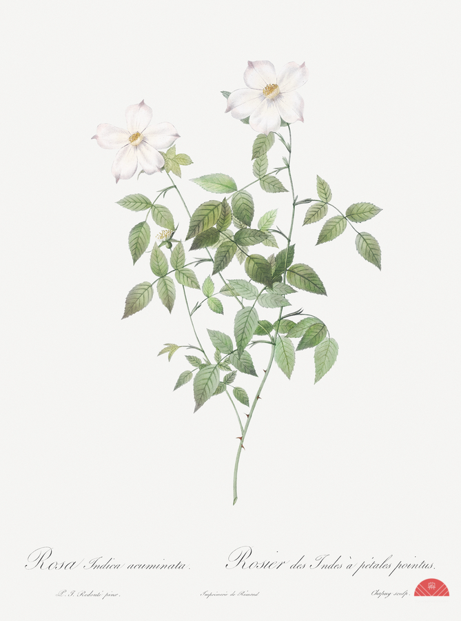 Austrian Copper Rose Rosa eglanteria var. punicea from Les Roses 1817–1824 by Pierre-Joseph Redouté.