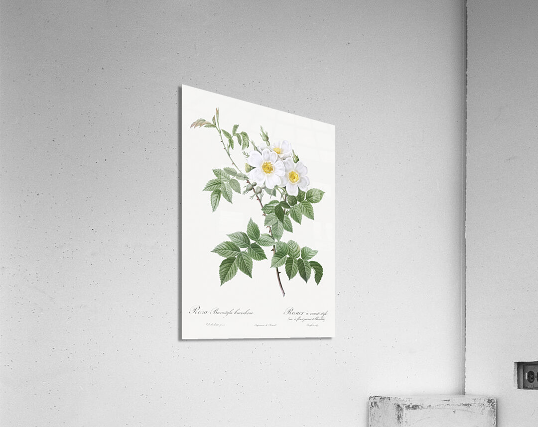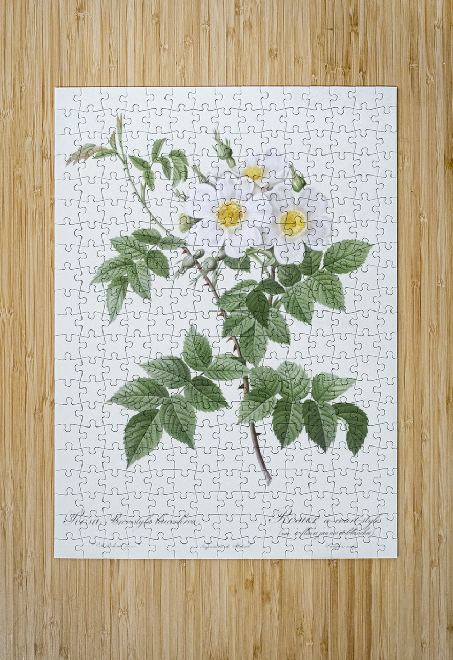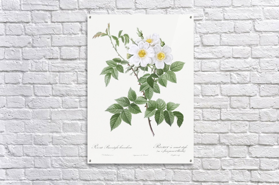 Short-styled rose with yellow and white flowers Rosa brevistyla leucochroa from Les Roses 1817–1824 by Pierre-Joseph Redouté.