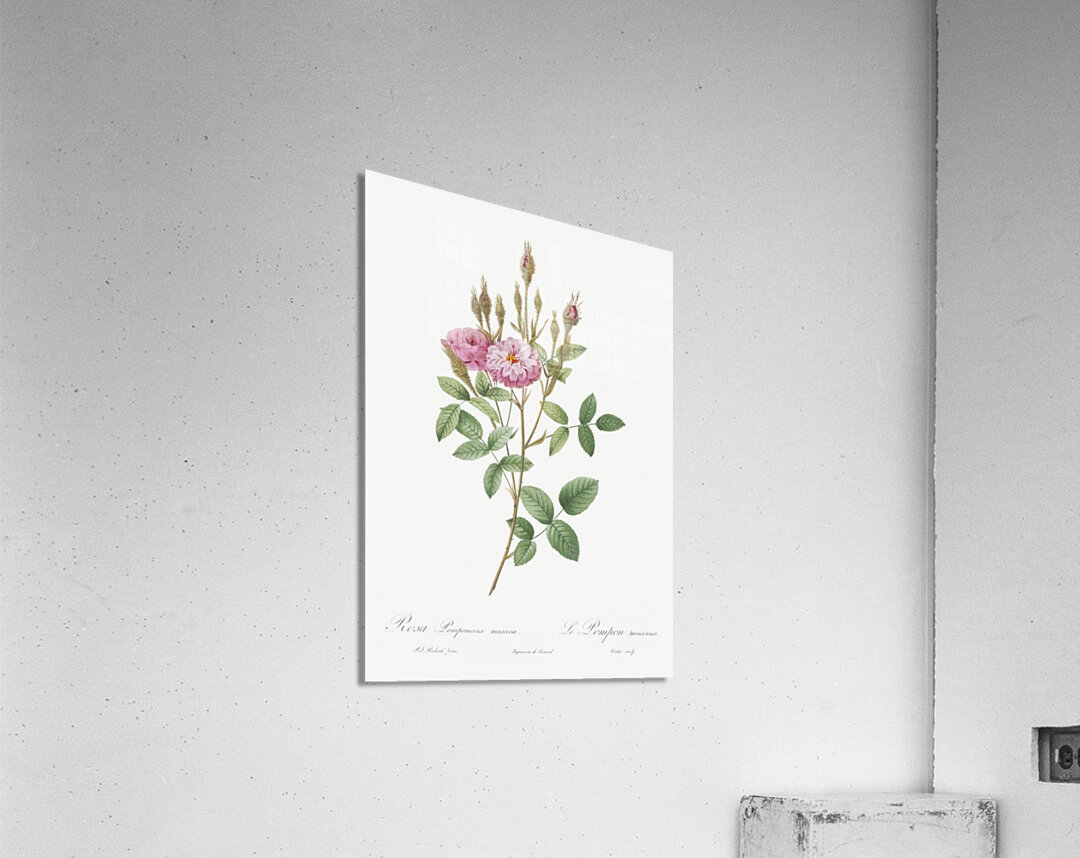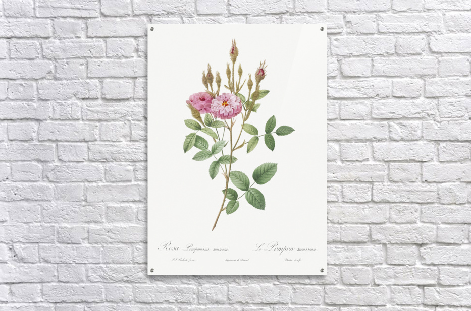 Mossy Pompon also known as the Sparkling Pompon Rosa pomponiana muscosa from Les Roses 1817–1824 by Pierre-Joseph Redouté.