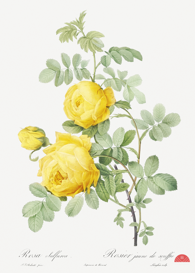 Agatha rose also known as Rosa gallica-Agatha Var. Regalis from Les Roses 1817–1824 by Pierre-Joseph Redouté.