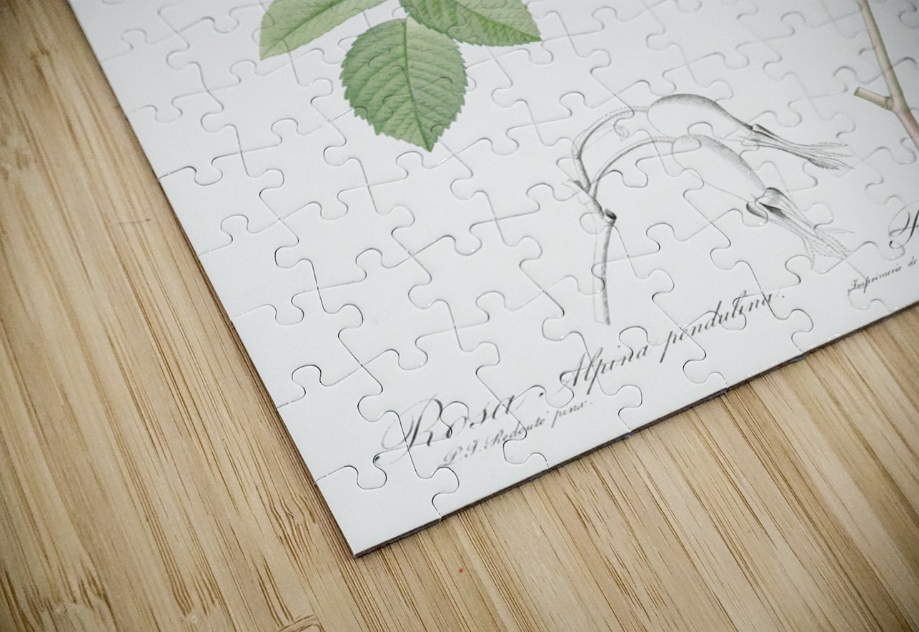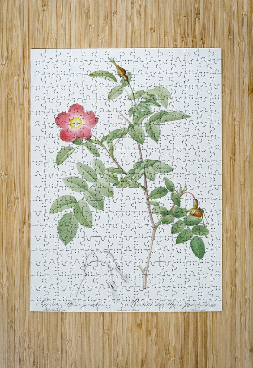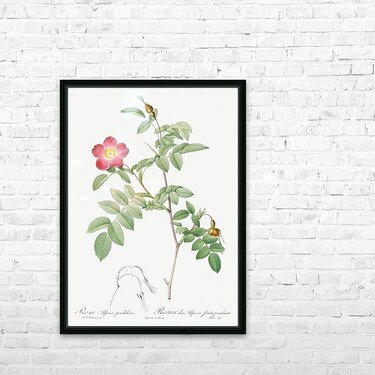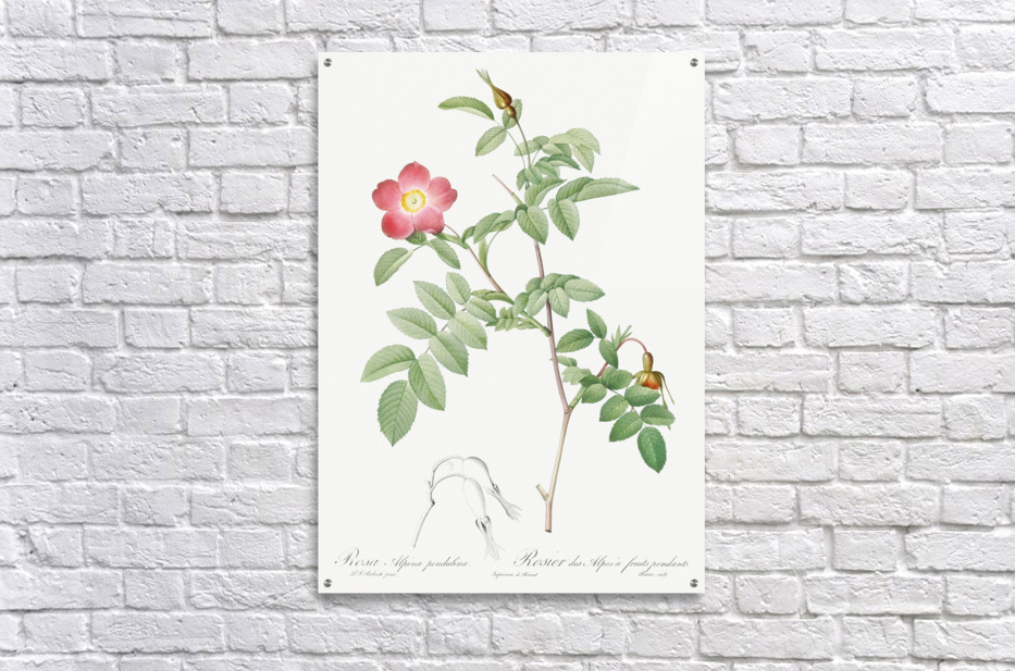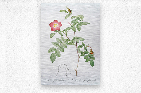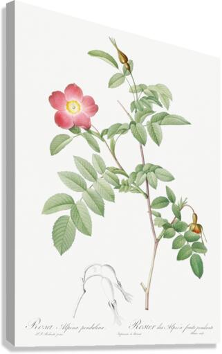 Alpine Rose also known as Rose of the Alps with Hanging Fruits Rosa pendulina from Les Roses 1817–1824 by Pierre-Joseph Redouté.