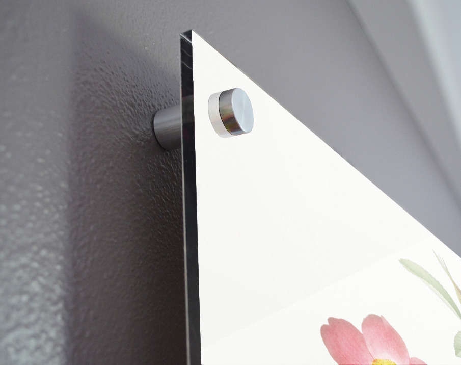 Printed to the edge - Ready to hang - provided with 4 premium polished aluminum stand off ( wall screws and mounting hardware provided ) We suggest a thicker 3/16" acrylic for any size over 42 inches to guarantee a straight acrylic, without curvature