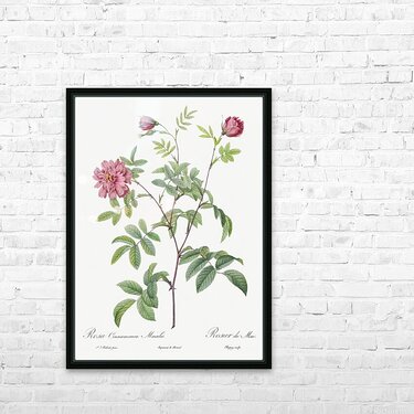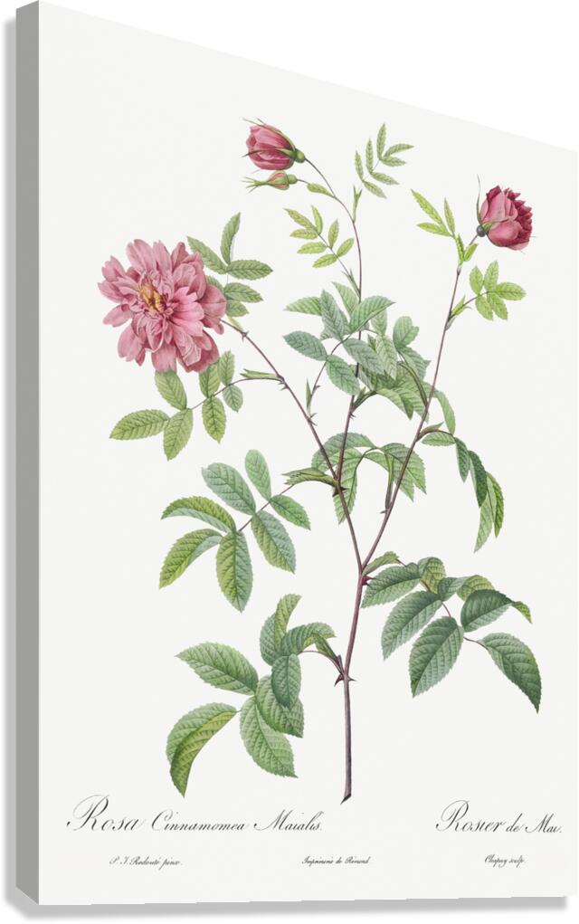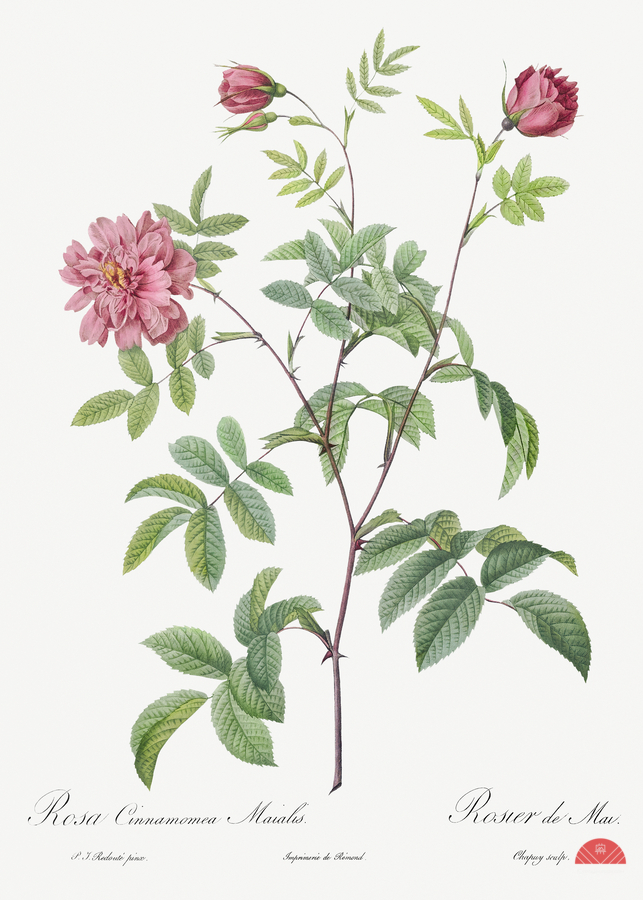 Cinnamon Rose also known as Rose of May Rosa cinnamomea maialis from Les Roses 1817–1824 by Pierre-Joseph Redouté.