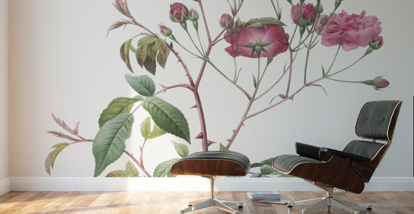 Pink Noisette Rosa noisettiana purpurea from Les Roses 1817–1824 by Pierre-Joseph Redouté.