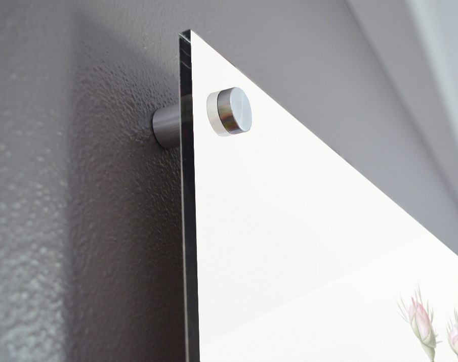 Printed to the edge - Ready to hang - provided with 4 premium polished aluminum stand off ( wall screws and mounting hardware provided ) We suggest a thicker 3/16" acrylic for any size over 42 inches to guarantee a straight acrylic, without curvature