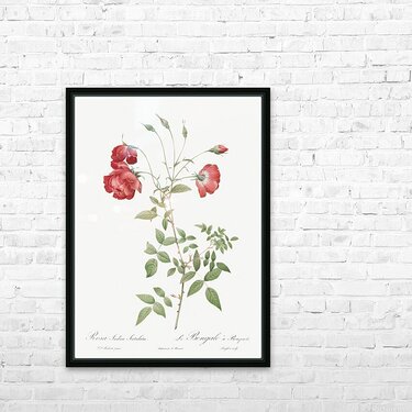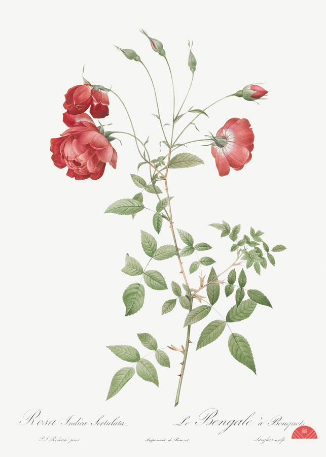 Red Rose also known as Bengal in Bouquet Rosa indica sertulata from Les Roses 1817–1824 by Pierre-Joseph Redouté.