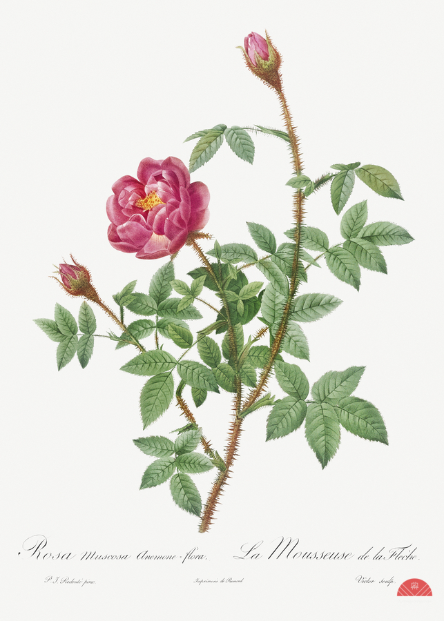 Anemone-Flowered Rose Muscosa Rosa muscosa anemone-flora from Les Roses 1817–1824 by Pierre-Joseph Redouté.