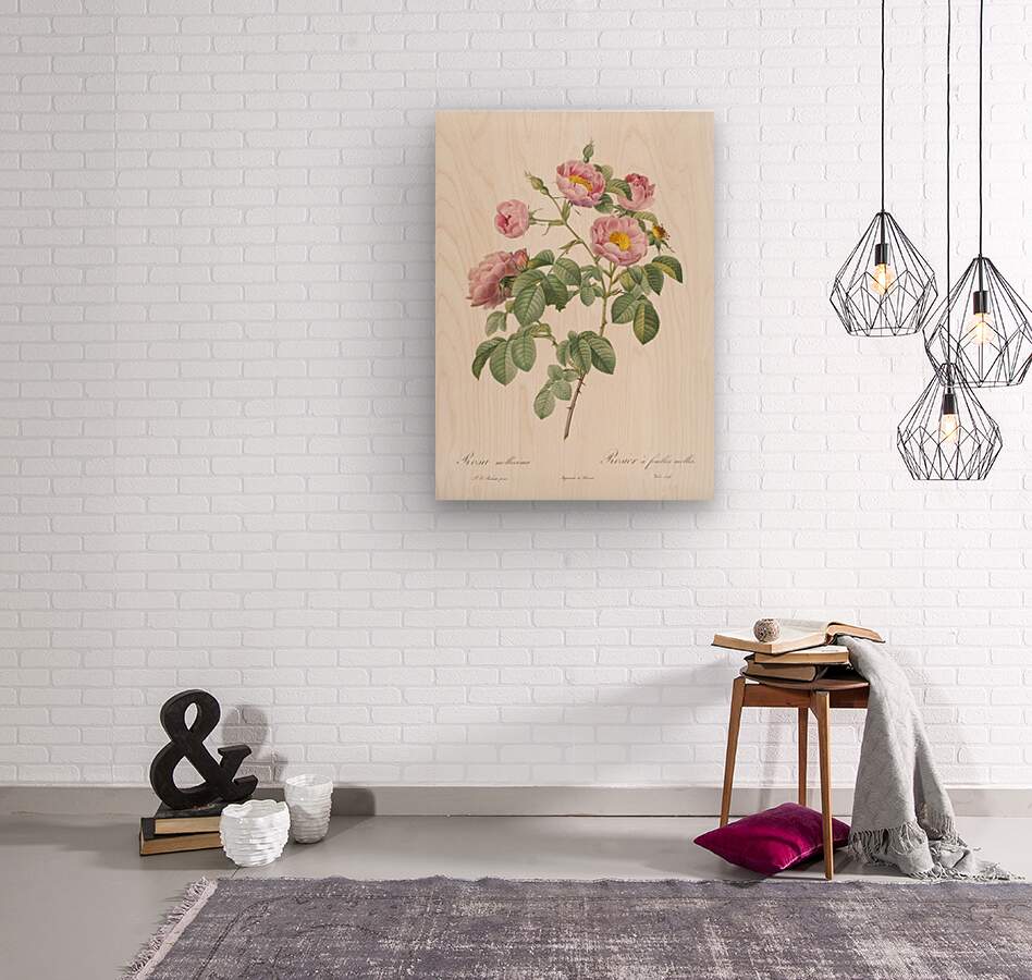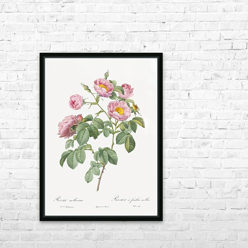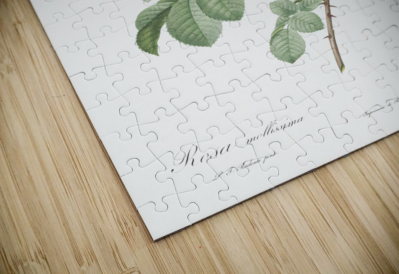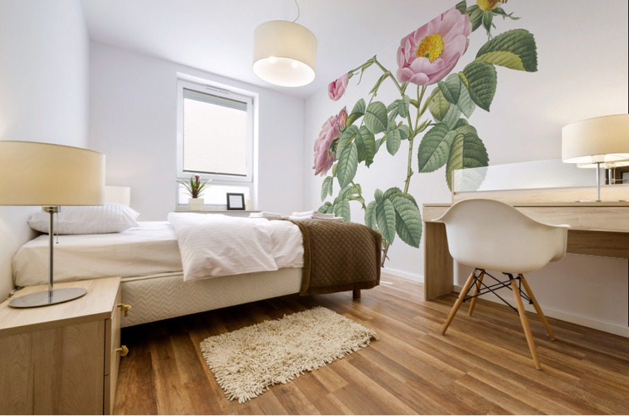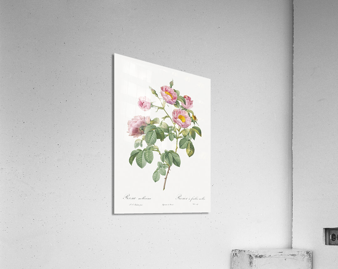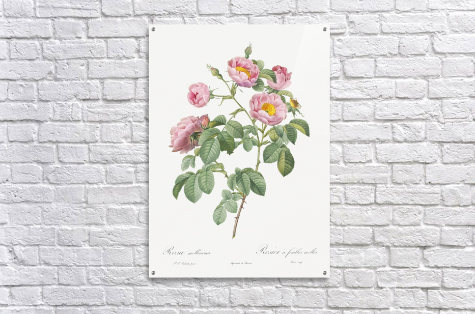 Semi-Double Variety of Tomentose Rose also know as Rosebush with Soft Leaves Rosa mollissima from Les Roses 1817–1824 by Pierre-Joseph Redouté.