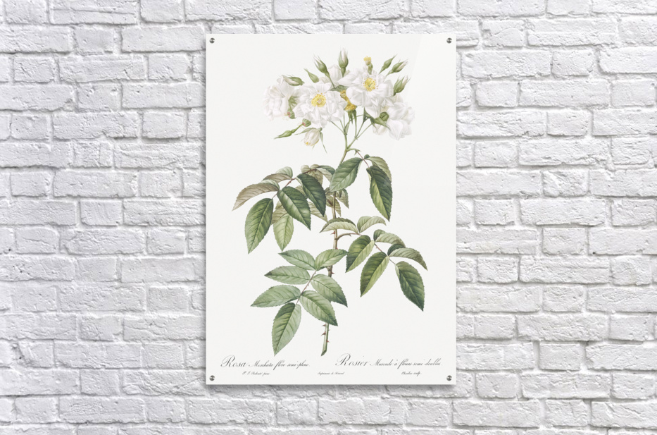Musk rose Rosa moschata flore semi pleno from Les Roses 1817–1824 by Pierre-Joseph Redouté.