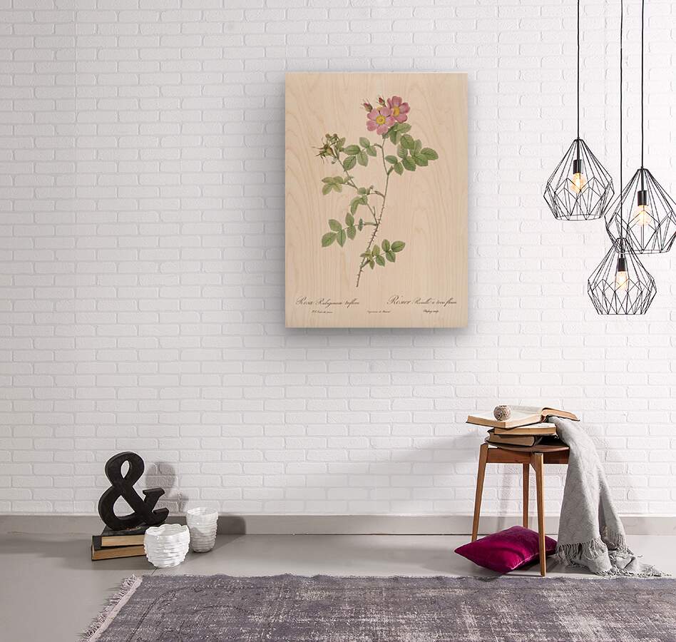 Sweetbriar also known as Rusty Rose with Three Flowers Rosa rubiginosa triflora from Les Roses 1817–1824 by Pierre-Joseph Redouté.