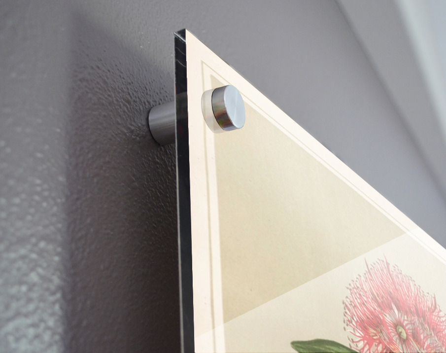 Printed to the edge - Ready to hang - provided with 4 premium polished aluminum stand off ( wall screws and mounting hardware provided ) We suggest a thicker 3/16" acrylic for any size over 42 inches to guarantee a straight acrylic, without curvature