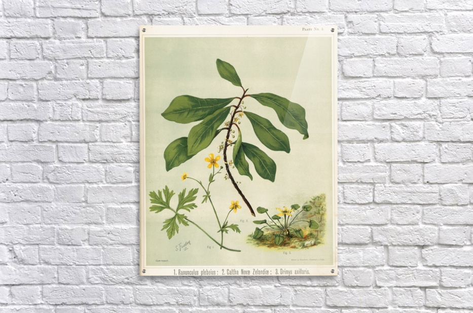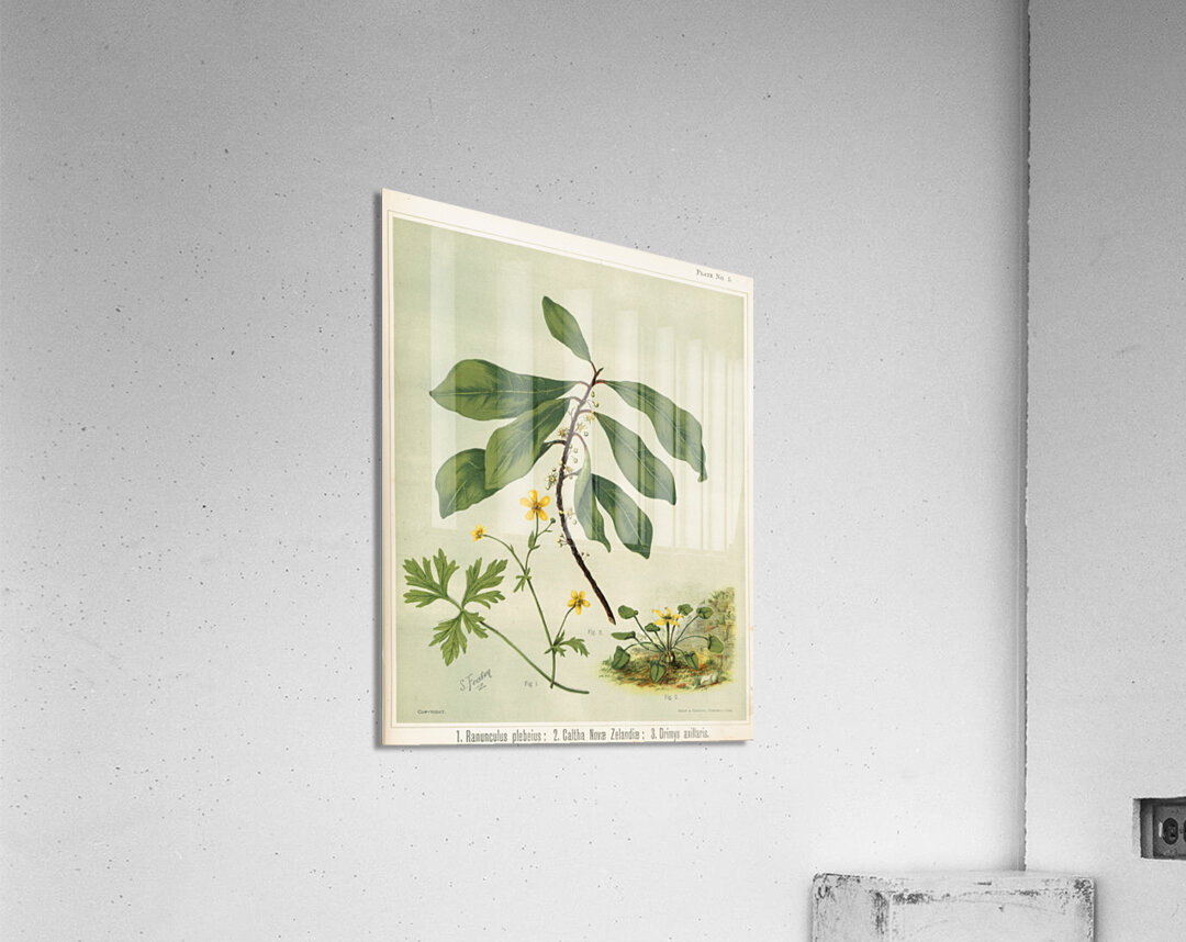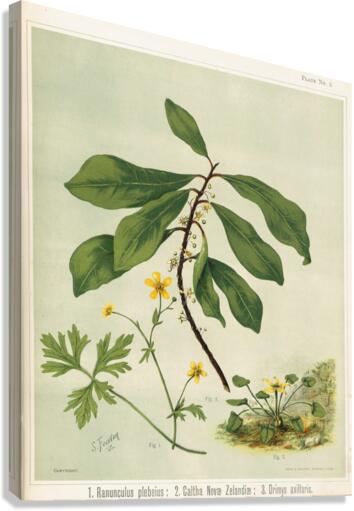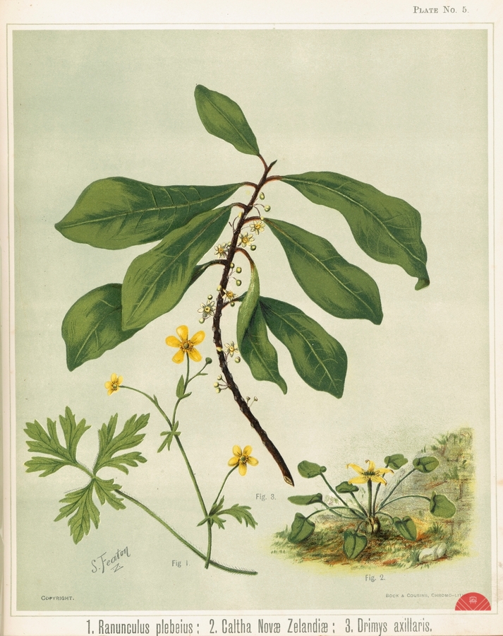 1. Ranunculus plebeius 2. Caltha novae zelandiae 3. Drimys axillaris. Plate 5 Sarah Featon New Zealander 1848 – 1927