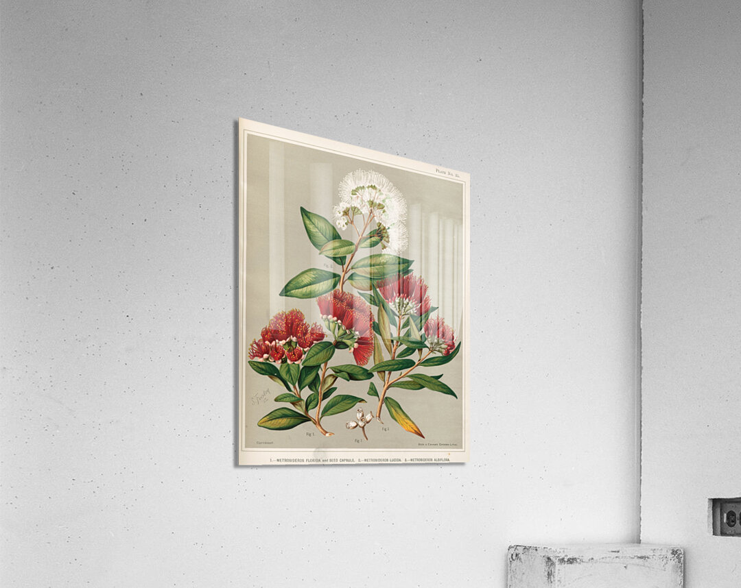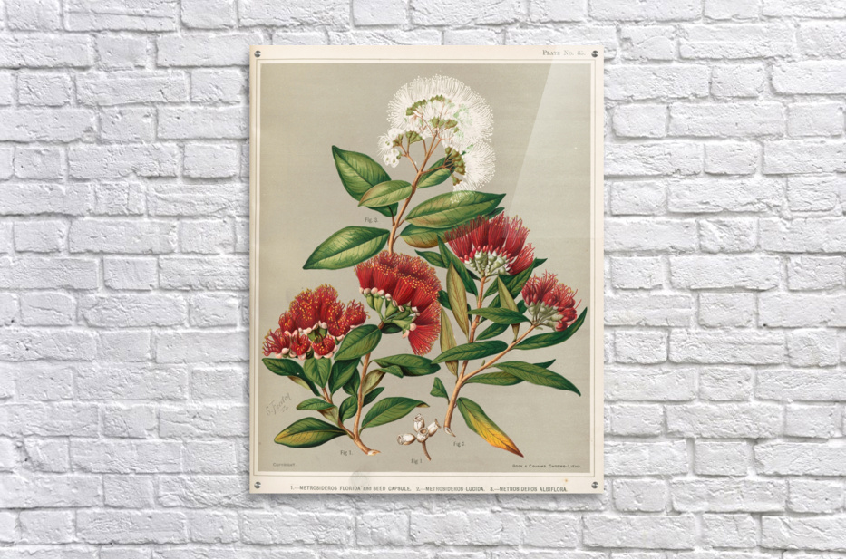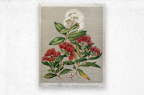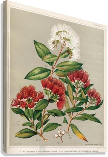 1. – Metrosideros florida and Seed Capsule. 2. – Metrosideros lucida. 3. – Metrosideros albiflora. Plate 35 Sarah Featon New Zealander 1848 – 1927