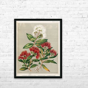 1. – Metrosideros florida and Seed Capsule. 2. – Metrosideros lucida. 3. – Metrosideros albiflora. Plate 35 Sarah Featon New Zealander 1848 – ...[+]