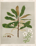 1. Hinau. – Elaeocarpus dentatus. 2. Rauhuia. – Linum monogynum. 3. Fruit of Hinau. Plate 15